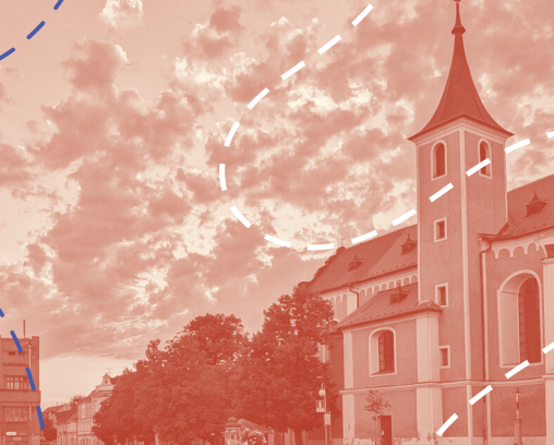 Auf dem Stadtplatz von Domažlice sind Fassaden aus der zeit der Renaissance, des Barocks, des Klassizismus und des Historismus zu sehen. Zu den jüngeren Gebäuden gehört das zweigeschossige Rathaus aus den 90er Jahren des 19. Jahrhunderts, an der Gegenseite von dem schiefen Turm. Nicht nur der Marktplatz, sondern auch große Teile der angrenzenden Straßen wie Vodní, Hradská und Spálená haben ihren historischen Charakter bewahrt. An vielen Häusern auf dem Marktplatz befinden sich Gedenktafeln, die an den Aufenthalt vieler bedeutender Persönlichkeiten der tschechischen Kultur erinnern. Auch an die Befreiung der Stadt durch die amerikanische Armee im Jahr 1945 wird erinnert.