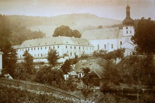 Der Legende nach gründete Fürst Břetislav das Kloster im Jahr 1040, historisch belegt ist es jedoch erst in den 60er Jahren des 13. Jahrhunderts. Zu dieser Zeit waren hier die Wilhelmiten tätig, bayerische Ordensbrüder aus dem Kloster St. Wilhelm, die sich später mit den Augustinern vereinigten. Das Kloster wurde an einem der Zweige der Regensburger Handelsstraße errichtet, um Pilger zu versorgen. Im Umland gründeten die Mönche Siedlungen, Mühlen, Hammermühlen sowie Glashütten und bemühten sich, so autark und wirtschaftlich unabhängig wie möglich zu sein.