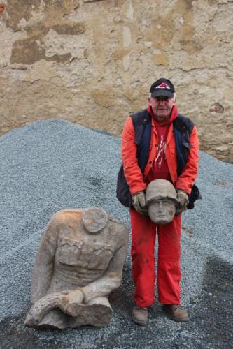 Im Jahr 2015, als die Baustelle für den Wiederaufbau der Synagoge von Poběžovice vorbereitet wurde, welche die Jahre der Naziherrschaft ebenfalls nicht überlebt hatte, entdeckten die Archäologen genau diese Statue in drei Metern Tiefe. Wie sie dorthin gekommen ist, bleibt ein Rätsel. Nach einer sorgfältigen Rekonstruktion kehrte sie im Jahr 2020 an ihren ursprünglichen Platz zurück und erinnert heute nicht nur an alle Gefallenen, sondern auch an die dramatischen Umwälzungen, die Poběžovice im letzten Jahrhundert erlebt hat.