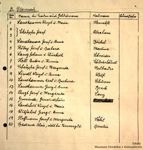 Nach deren Zwangsumsiedlung blieb das Dorf verlassen und die meisten Häuser wurden zur Gewinnung von Baumaterial abgebaut. Die Scheunen, die in den 1970er und 1980er Jahren hier noch standen, wurden nicht nur zur Lagerung von Heu genutzt. Sie waren auch bei den Tramps (in der Tschechoslowakei verbreitete Subkultur, deren Anhänger ihre Freizeit selbstorganisiert und wandernd mehrere Tage im Freien verbringen) beliebt, die die Kneipe in Stockau besuchten, was der SNB (Korps der nationalen Sicherheit, Staatssicherheit) nicht gefiel. Später wurden auch die Scheunen abgerissen. Auf dem Friedhof in Stockau können Sie bis heute noch einige Grabsteine von Bewohnern von Glaserau / Skláře finden.